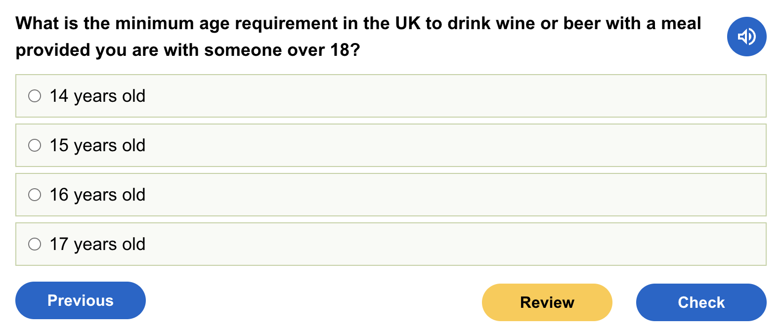 5. What is the minimum age requirement in the UK to drink wine or beer with a meal provided you are with someone over 18?